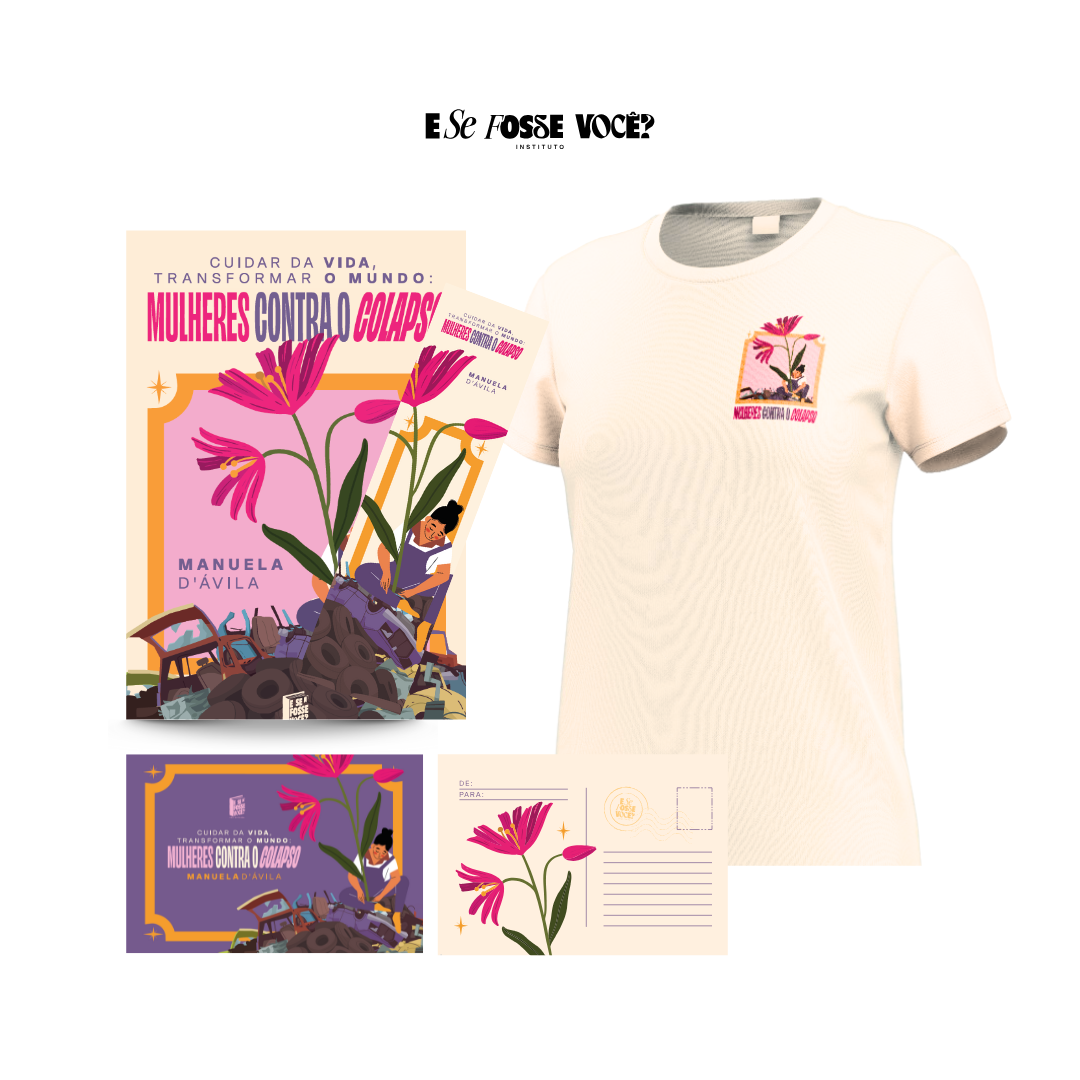 Combo: camiseta lançamento + livro Cuidar da vida, transformar o mundo: mulheres contra o colapso + presentes